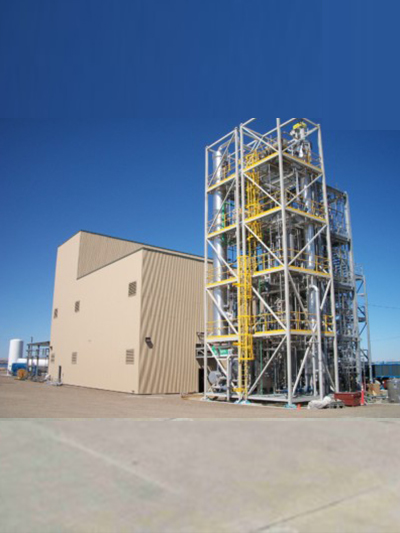 The client engaged Koch Modular to de-risk the project and conduct additional pilot testing at the Koch Modular Pilot Plant in Houston, TX. The objective was to enhance the process design and overcome the hurdle caused by emulsification in the extraction process, ultimately aiming to produce marketable, bio-based acetic acid. To perform the pilot testing, the client supplied a couple of drums of fermentation broth to Koch Modular. After successfully optimizing the process, nearly 99% extraction of acetic acid was achieved by utilizing KARR® extraction technology.
