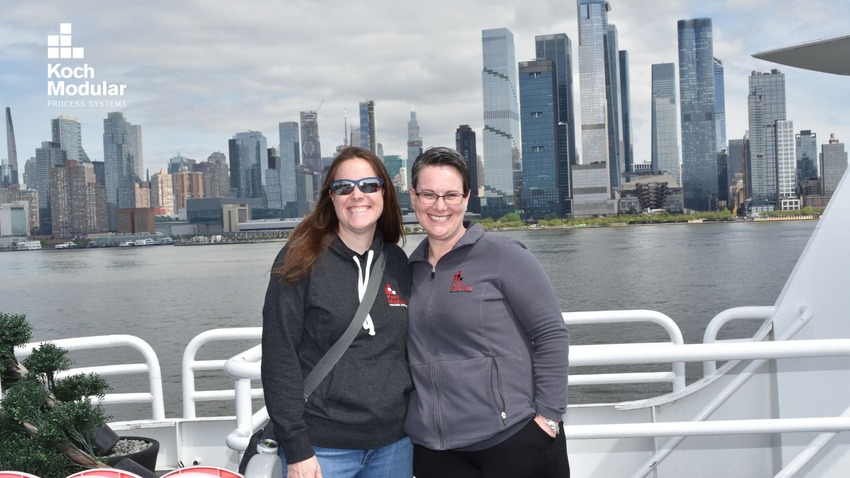 Lisa: We typically host two major events each year to bring together all of our employees who work both on a remote basis and/or onsite at our Paramus, NJ, and Houston, TX locations. Given our mostly remote work environment, we feel that bringing all of our employees together for in-person events on a regular basis is critical in helping to build relationships, as well as enabling friendships to form. This year is very special because it’s the celebration of Koch Modular’s 25th anniversary, so we flew everyone in to celebrate. The celebration kicked off with departmental gatherings, training, seminars, and team-building activities. After a nice, casual lunch at the hotel, we enjoyed a cruise on the Hudson River with magnificent views of New York City (including Lady Liberty) and a wonderful dinner. Each attendee received a Koch Modular anniversary gift to commemorate this milestone occasion: a backpack and a mini inspection flashlight.